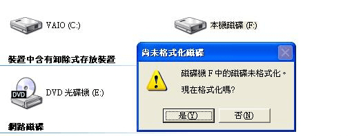 ◤ 需要格式化磁碟機H:中的磁片才能使用