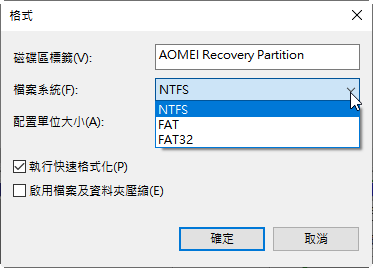 ✎格式化將擦除目標磁碟分割區上的所有數據,請務必在格式化之前備份重要資料。