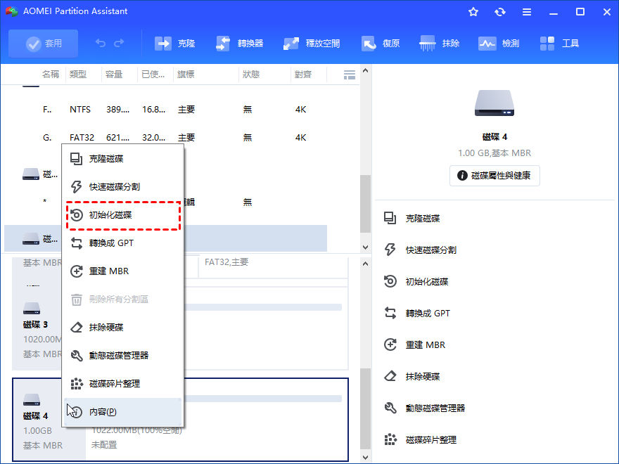 2. 右擊閃迪SSD,選擇“初始化磁碟”。