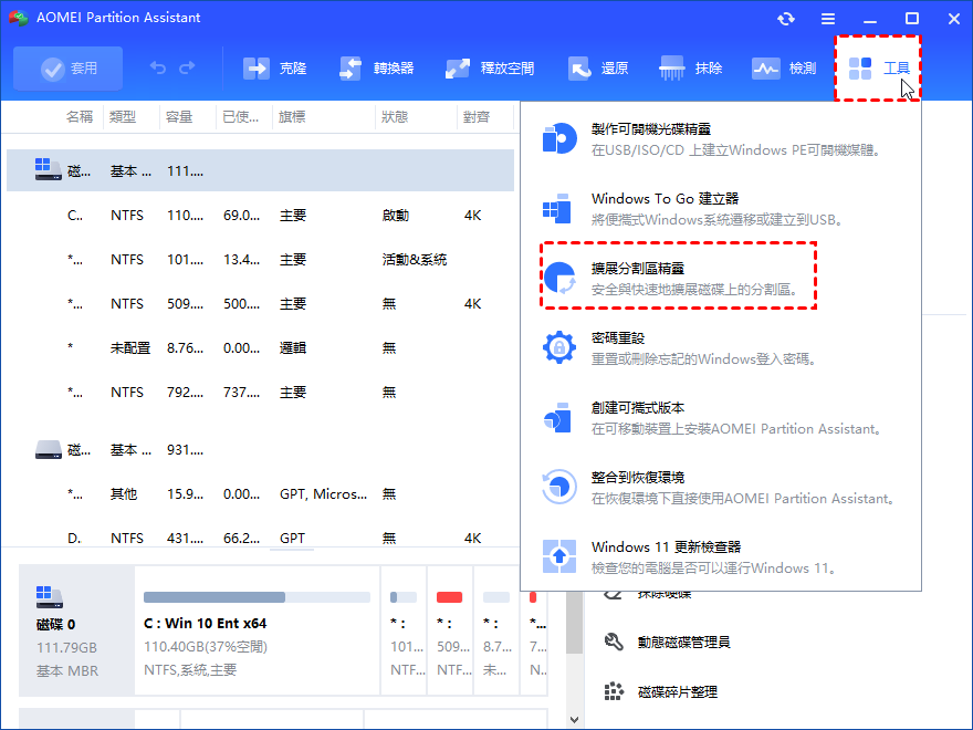 您的電腦需要足夠的空間來存儲系統資訊和一些程式以實現平滑運行。因此,如果C槽的空間不足,您可以嘗試延伸系統分割區。