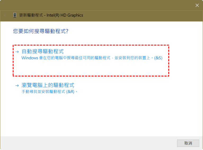 3. 點選自動搜尋驅動程式並重新啟動電腦。