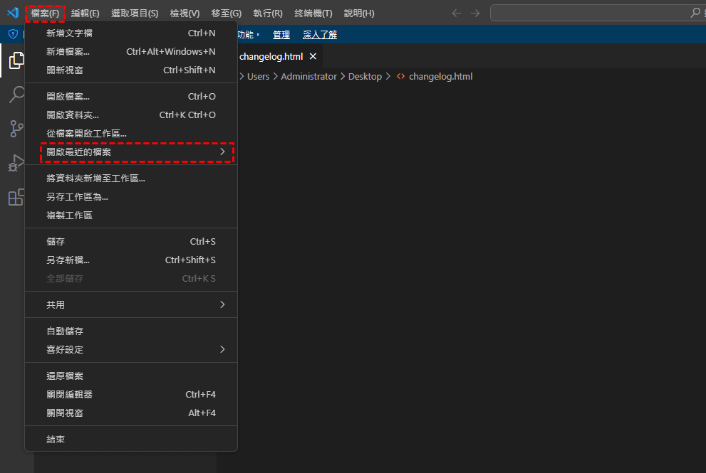 您可以打開Visual Studio Code:依次點擊“檔案” > “最近開啟”,檢查是否可以找到已刪除的VS Code檔案。如果可以找到,請嘗試開啟它。