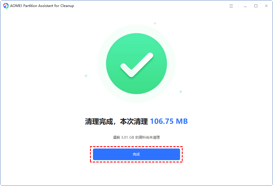 步驟4. 清理完成後,您可以看到清理後釋放的儲存空間,再點選「完成」。