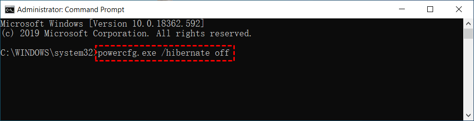 2、然後,請輸入“powercfg.exe /hibernate off”並按 Enter 鍵執行以禁用休眠檔案。