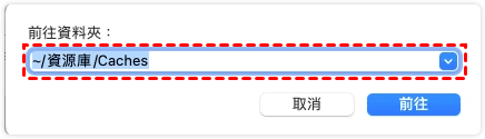 2、輸入“~/資源庫/Caches/”。然後,請手動刪除各應用程式的快取資料夾。