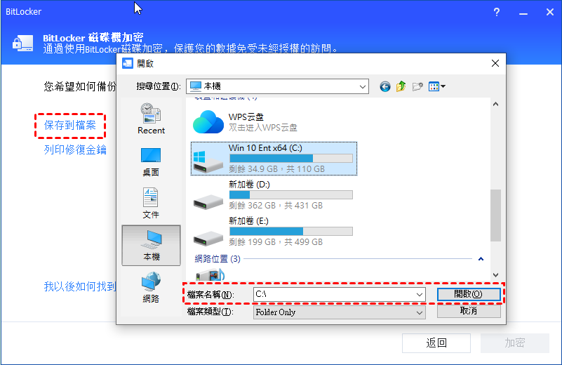 💡答:不行,只能加密NTFS分割區。不支援其他檔案系統的分割區。