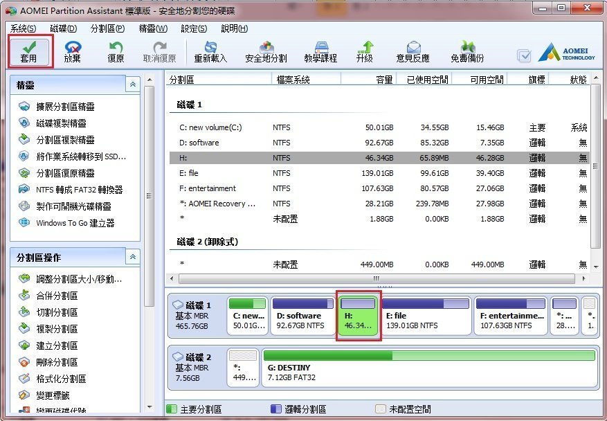 步驟三、 現在您可以預覽新創立的分割區,點擊“套用”去執行已經做的操作。