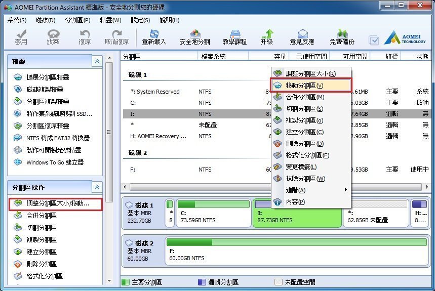 如何使用AOMEI Partition Assistant移動分割區?