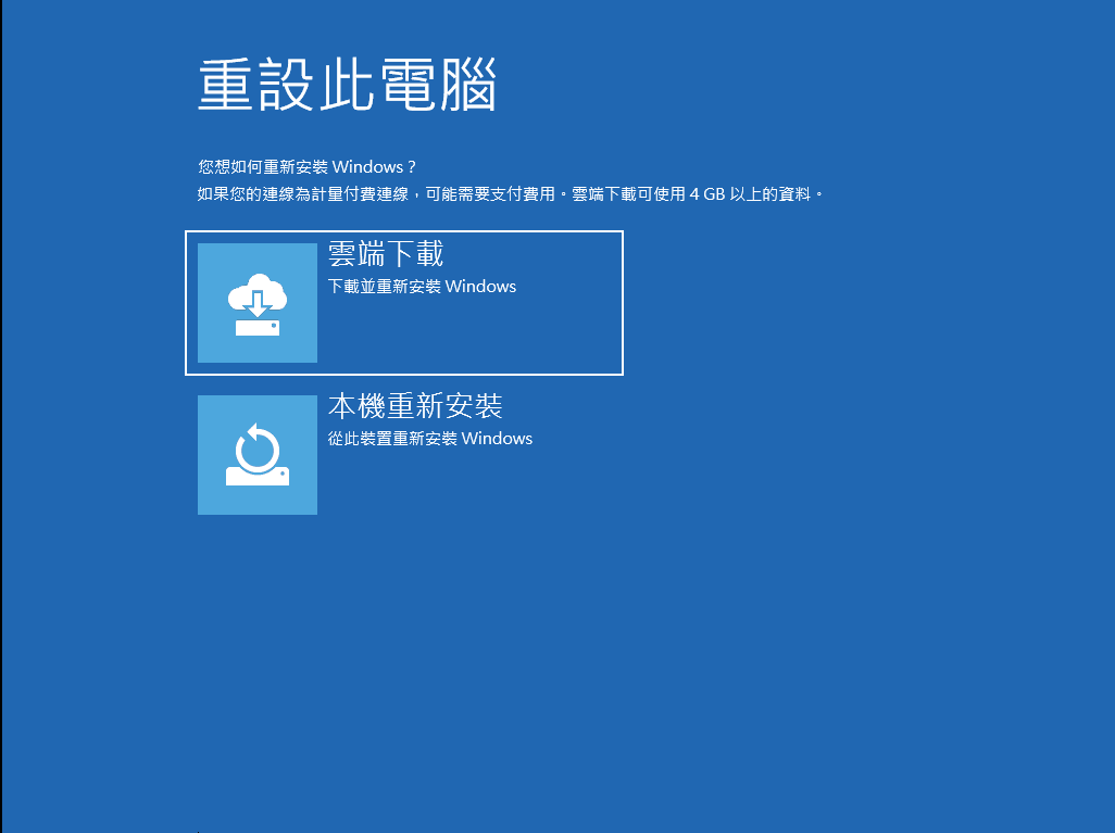 步驟4:然後,您還需要進行選擇:“雲端下載”或者“本地重新安裝”。