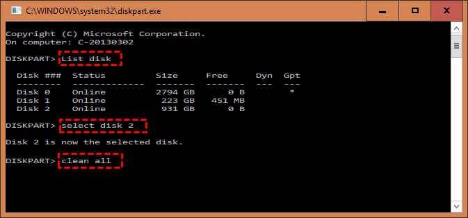 • clean all(從磁碟2上刪除所有資料)