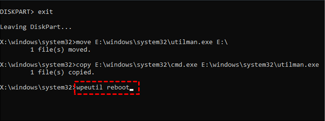 wpeutil reboot