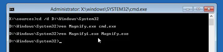 ren Magnify.exe cmd.exe