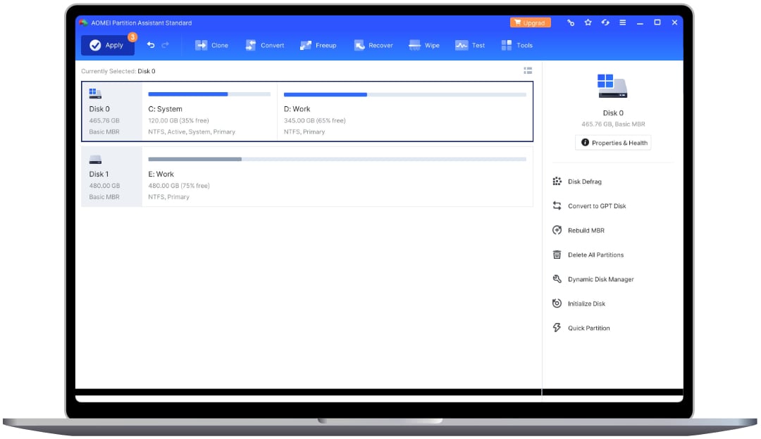 接下來,您可以返回AOMEI Partition Assistant,並使用其所有功能和優勢。
