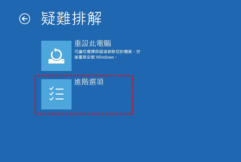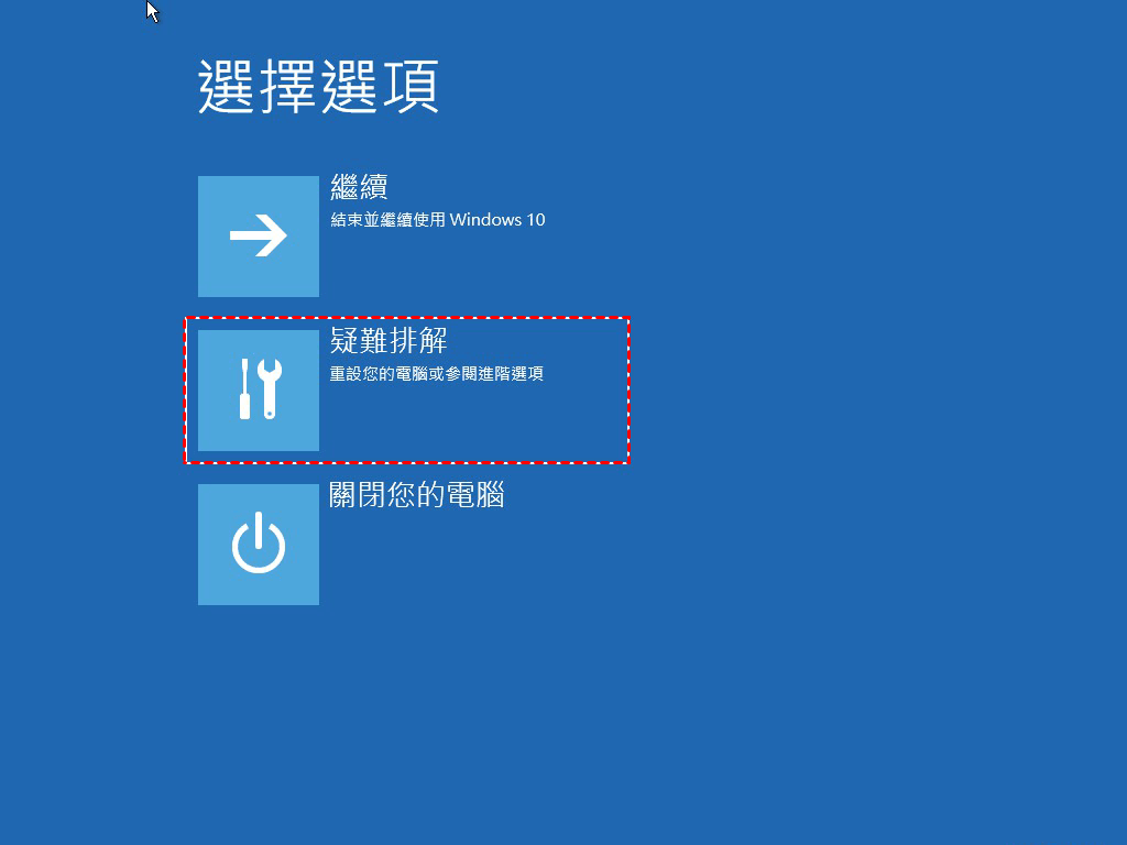 6.在“選擇選項”畫面時,選擇“疑難排解”。