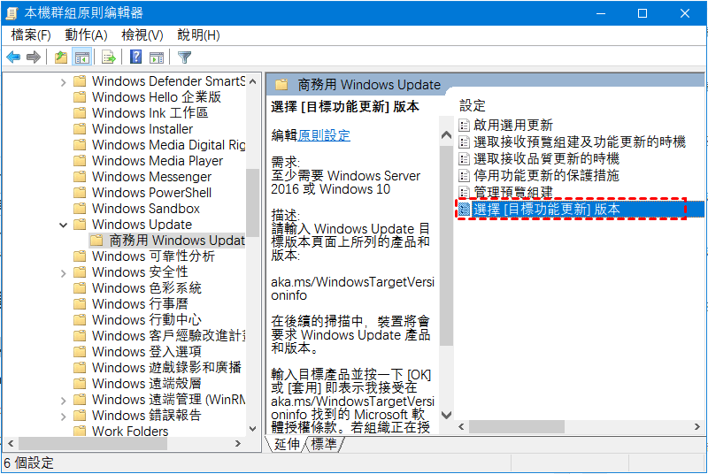 本機電腦原則 > 電腦設定 > 系統管理範本 > Windows 元件 > Windows Update > 商務用Windows Update。