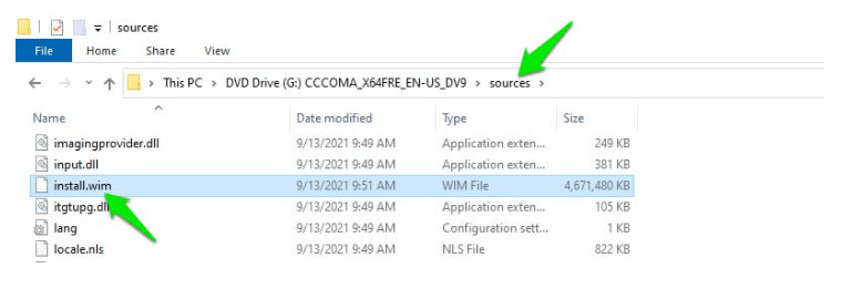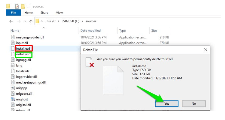 步驟 4.然後在Windows檔案總管中打開創建好的Windows 10可開機USB,刪除 Source中的install.esd檔案,然後貼上剛才複製的install.wim檔案。(如果提示檔案太大無法移動,需要將 USB 轉換為NTFS檔案系統)。