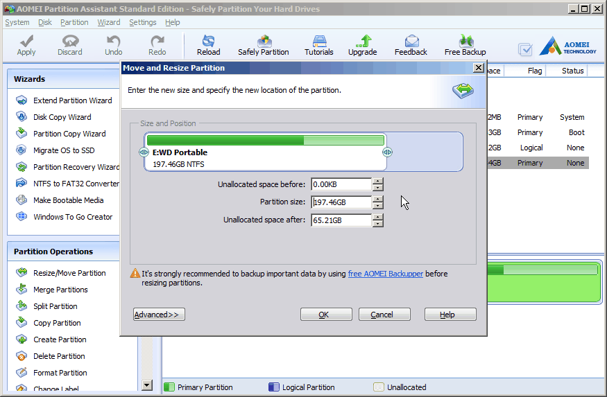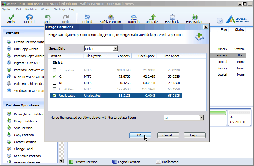 Luckily, after spending time on the internet, I finally found this powerful disk manager freeware – AOMEI Partition Assistant Standard – that is able to extend system partition (Encrypted partition is also supported) by shrinking another drive whether they are contiguous or not. Compared with its other counterparts, this tool is more feature-rich. Besides partition extension, it’s also capable of cloning partition, wiping partition, and formatting partition, and so on. Unlike other third-party software, it’s free from adverse bundleware and provides a cleaner UI that is literally user-friendly.