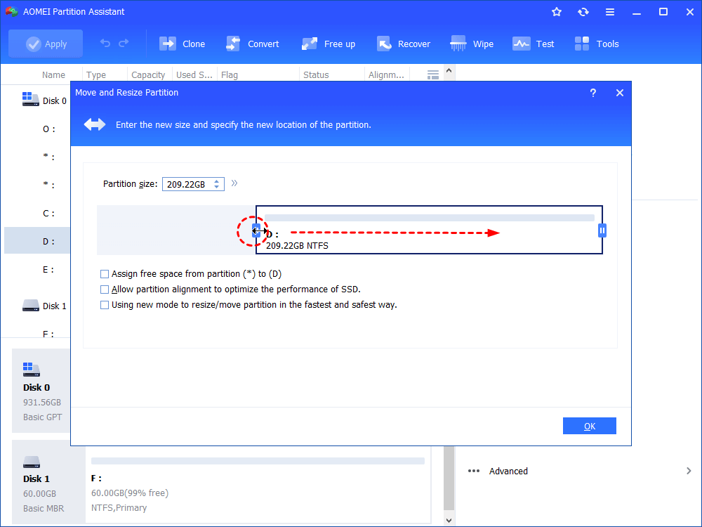 To solve this problem of "We couldn't update the system reserved partition", you can increase the size of system reserved partition using the free partition software called AOMEI Partition Assistant Standard. With it, you can shrink another partition to get some unallocated space and add it to the small system reserved partition, resize BitLocker partition, create/delete/wipe/merge partition, and so on. You can download this freeware and take a look at the detailed steps.