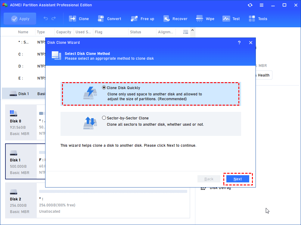 Step 2. Choose Disk Clone type, here we choose "Clone Disk Quickly".