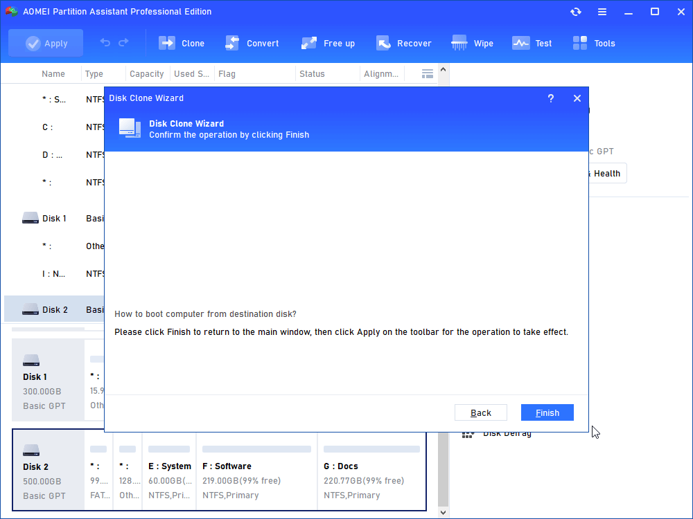 Step 5. If you copy the disk contains the system partition, you will receive the following message which guides you on how to boot OS from the destination disk.