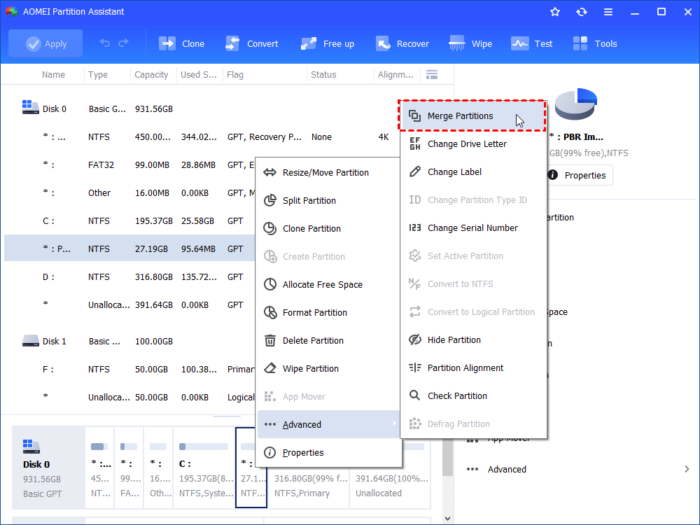 In order to move a (recovery) partition without losing data, it is recommended to use specialist third-party software: AOMEI Partition Assistant Professional. Before we move the recovery partition, you must ensure that there is some unallocated space after the recovery partition. If there is no unallocated space on the hard drive, you can shrink or delete a partition to generate some. First download this powerful partition manager to get started.