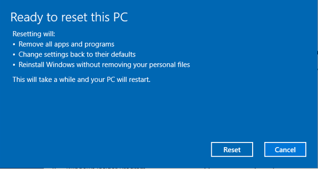 5. In “Ready to reset this PC” window, click on “Reset” to reinstall Windows 10.
