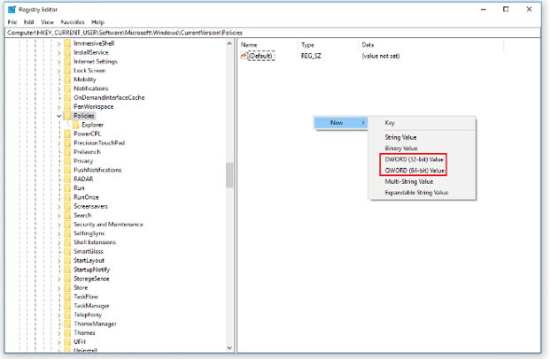 2. Copy this path “HKEY_CURRENT_USER\SOFTWARE\Microsoft\Windows\CurrentVersion\Policies”. Then, paste it onto the Registry Editor’s address bar and select “Policies”.