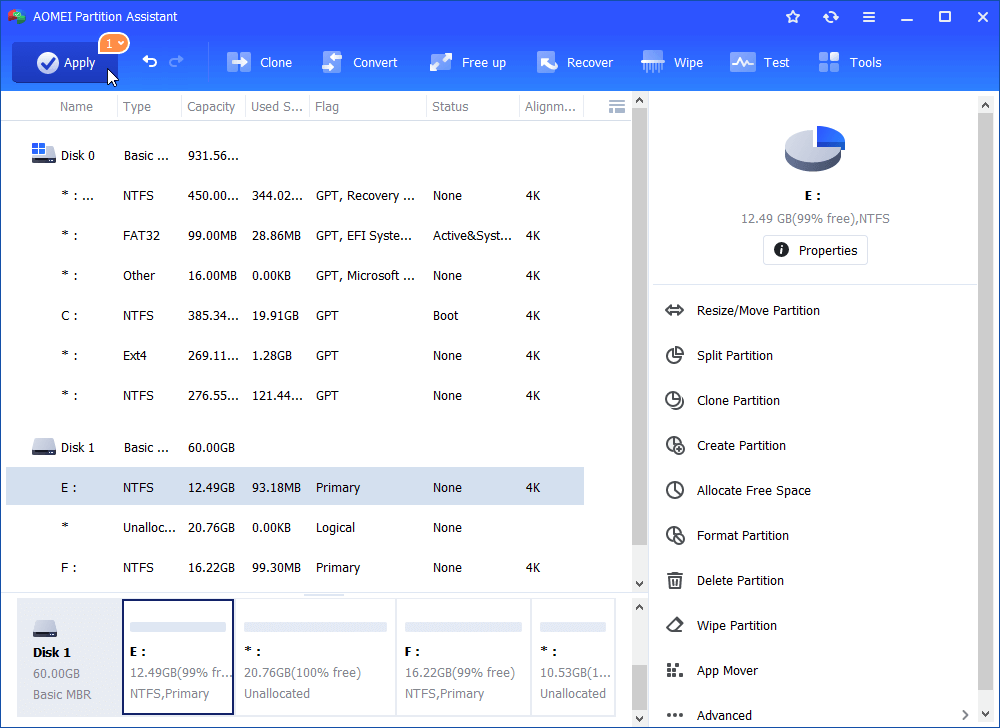When it comes to removing Z drive in Windows 10, no software is as helpful as AOMEI Partition Assistant Standard. As powerful disk manager software, it’s able to delete any partitions quickly and meanwhile, create partitions on the unallocated space that emerges after deleting or shrinking another partition. Moreover, besides these 2 mentioned features, AOMEI Partition Assistant Standard can also help you format partitions, resize partitions, and clone partitions within only a few steps.
