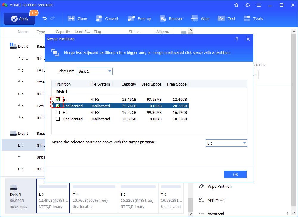Step 6. Tick off the unallocated space and hit “OK”.