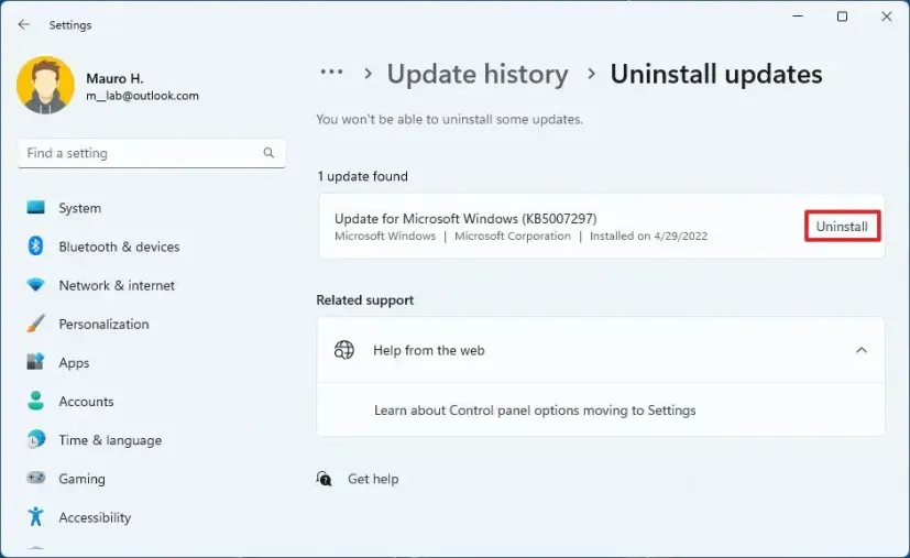 Step 5. Find the latest Windows update patch and select "Uninstall" to remove it.