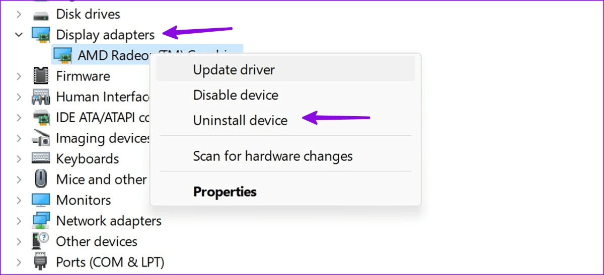 If graphics drivers are causing problems, uninstall and reinstall them. Access Device Manager, uninstall the graphics drivers under Display adapters, and restart your PC to allow the system to download the required drivers.
