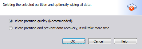 Step 3. Select the way to delete partition. Delete partition quickly is the recommended. It takes less time.