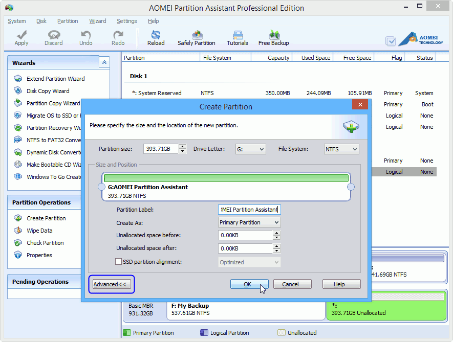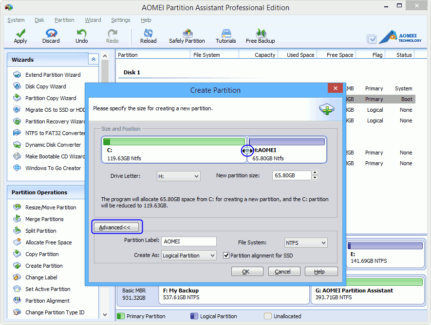 Create Windows 8 partition with AOMEI Partition Assistant