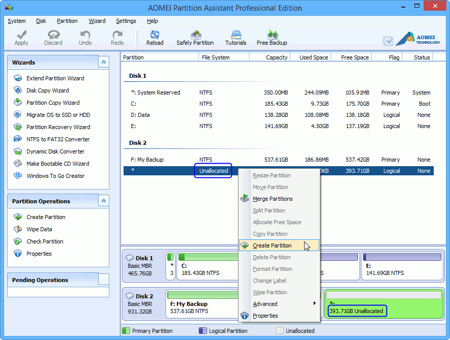 As a Partition Magic Software, AOMEI Partition Assistant can create partition Windows 8 in different ways based on the situation. In general, there are two situations.