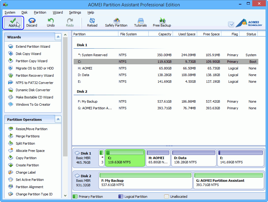 In conclusion, as a powerful partition magic tool, AOMEI Partition Assistant helps you to deal with partition problems easily and safely. It also has the features, such as“Delete Partition”, "Resize Partition", "Split Partition", "Copy Partition", "Allocate Free Space", etc. Download the software and try it out in person.