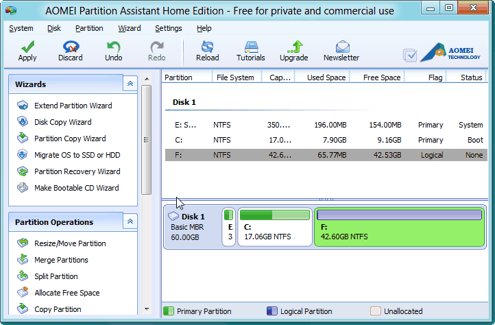 Note: Partition Magic Windows 8 - AOMEI Partition Assistant cannot add free space from one partition in A disk to target partition in B disk. It can only reallocate free space with the same hard drive.